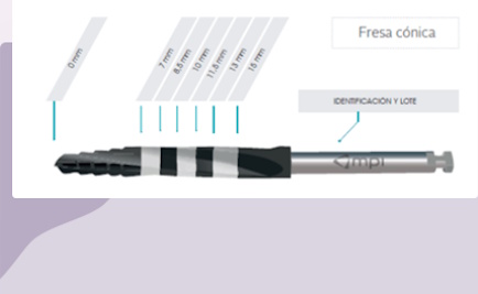 Marcas de profundidad de las fresas cilíndricas para MPI Privilege®. Brindan una guía visual precisa durante los procedimientos, asegurando una profundidad de corte óptima en cada uso.