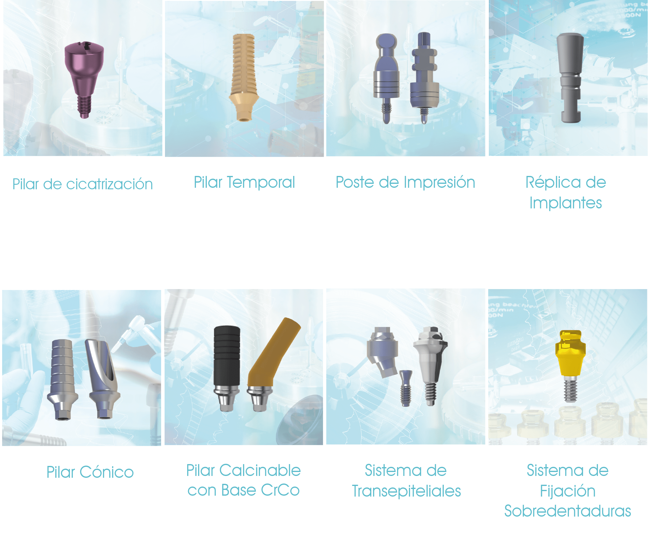 MPI ha desarrollado una amplia gama de componentes protésicos, para restaurar coronas de forma fácil y duradera, mediante prótesis cementadas, atornilladas o sobredentaduras.