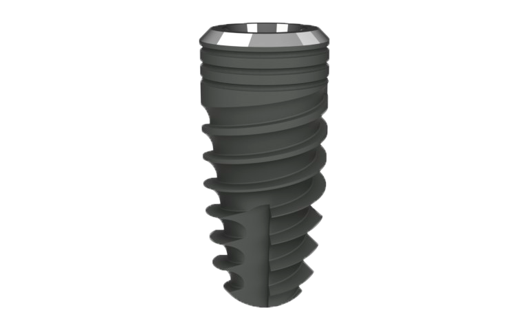 El cuerpo ¨Recto-Cónico¨ y la distancia entre espiras de 1,0 mm, permiten una inserción controlada facilitando la cirugía. La forma de las espiras proporciona un anclaje retentivo en todas las calidades óseas, obteniendo una estabilidad inicial óptima.